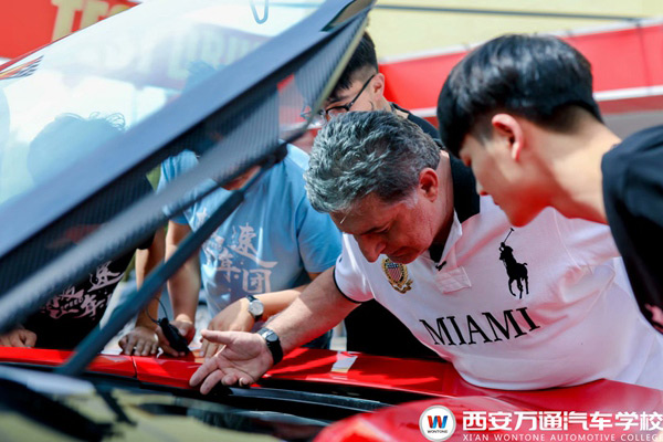 在法拉利工廠,布斯尼利•克勞迪奧及法拉利工程師向極速少年團詳細講解了法拉利特殊的制造工藝與超強性能,極速少年團驚嘆于這世界級的制造工藝。