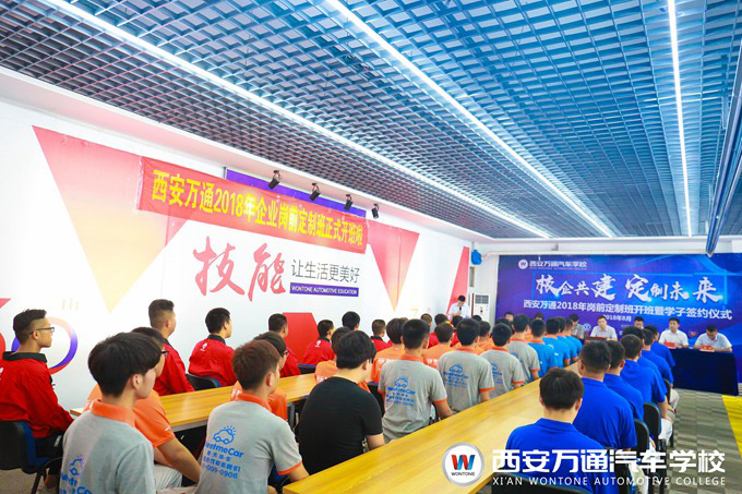 2018秋季開學之際,西安萬通汽車學校與恒泰汽車服務連鎖、福耀汽車玻璃服務、靚車牛人汽車美容服務連鎖以及每天美車汽車美容服務等企業共同發力,將學子的未來職業發展從技能培養到崗前強訓又推向了更高層次。