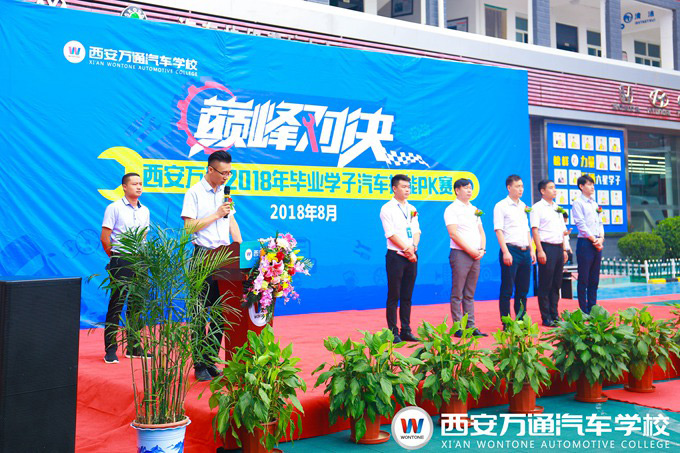 其中,西安萬通校區李主任、創就業指導中心魏主任、靚車牛人汽車美容連鎖王總經理、每天美車汽車美容連鎖曹總經理、愛車坊汽車服務連鎖梁總經理以及本次大賽的裁判長張建虎出席本次技能大賽開幕式。