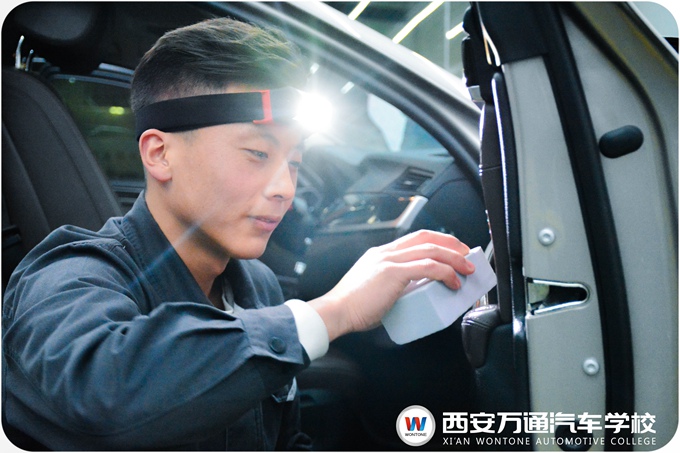 通過網絡查詢和實地考察,李江敏來到了西安萬通汽車學校,報讀了汽車檢測與維修專業,開啟了自己的汽修生涯。在西安萬通的兩年汽修學習,不僅學到了汽車相關的汽修技術,而且對自己的人格塑造也有不小的提升,這為后面他的職業發展奠定了堅實的基礎。