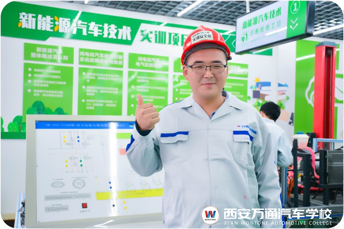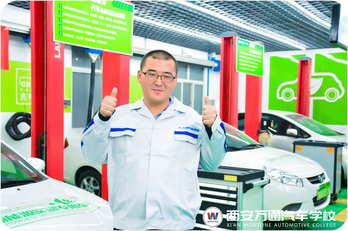來到西安萬通汽車學校學汽修,不僅是因為學校里面學的知識技術系統全面,而且還能學到新興技術——新能源汽車技術。何懿霖對齊全的汽修設備和豐富的實訓車輛感嘆道,“我的選擇是對的。”學校各種功能的實訓室,齊全的設備,還有獨特的“理實一體化”教學方法,更堅定了他學新能源汽車技術的信心。