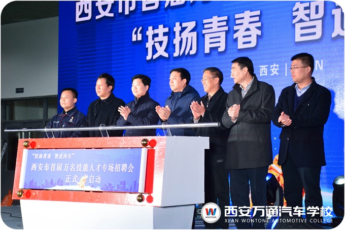 專場招聘會現場,有154家用人單位,提供1.2萬多個就業崗位,涉及汽車汽修、機械制造、商業服務、酒店餐飲食品、航空航天、新能源等領域近百個工種。西安萬通汽車學校受邀參與了技能人才專場招聘會進行汽車技能展示,引來不少興趣愛好者前來圍觀。恰逢西安市常委、常務副市長呂健蒞臨西安市首屆萬名技能人才專場招聘會現場,并作出指示:希望職業院校能以社會市場需求為指導,通過校企合作的形式培養出各行各業需要的技能人才,我們政府也會出臺并實施技能人才新政,為職業技能人才的培養、發展創造一個更好的環境,更廣闊的舞臺。