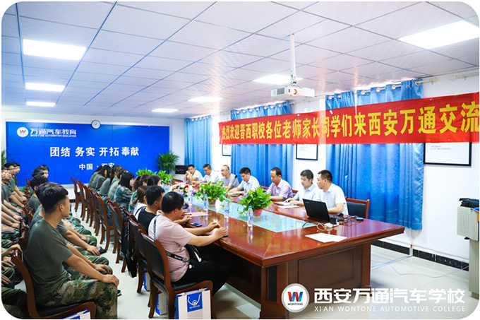 上午9時,晉西職校校領導帶領學子家長準時來到我校,在校會議室,西安萬通學校校長首先對來賓表示了熱烈歡迎,雙方領導就校校合作一事進行了研究討論,雙方對此事達成了共識。