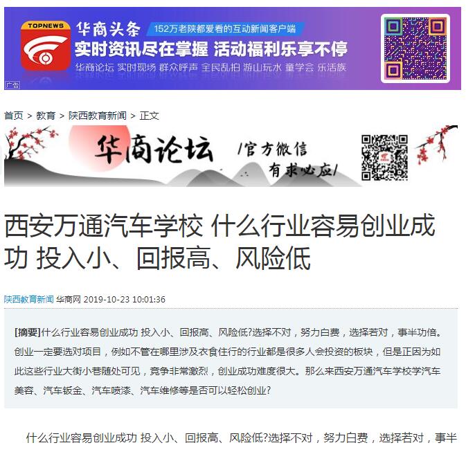 【華商網】西安萬通汽車學校 什么行業容易創業成功 投入小、回報