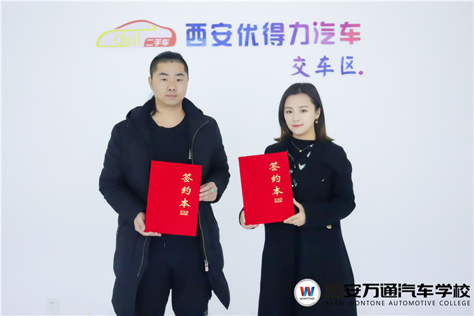 西安優得力二手車公司代表與我校創就業指導中心負責人簽約現場