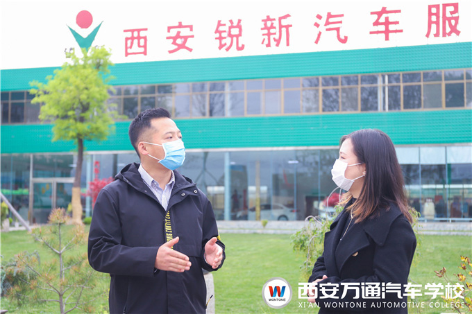 為深入了解市場人才需求,考察學生就業環境,4月1日,西安萬通汽車學校創就業指導中心彭主管深入西安銳新汽車服務有限公司總部,隨銳新企業崔總全面參觀了企業的維修廠、鈑金噴漆車間、自動清洗工位、美容區和客戶休息室等功能區域,并在快手平臺上現場直播了此次校企合作簽約儀式。