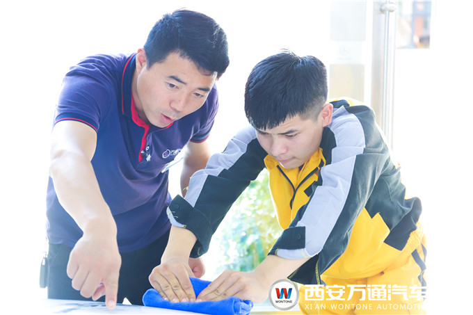 張老師覺得自己的一身本領,僅憑一兩次的教學講座并不能讓所有學生都學到真正的技術,于是他決定找一所專業的職業學校踏踏實實地培養行業所需的汽車美容精英。恰逢西安萬通汽車學校正在招聘經驗豐富的汽車美容能手進校執教,張老師深入了解后覺得萬通的教學理念和他不謀而合。憑借豐富的專業經驗和教學實力,張老師在一眾應聘者中脫穎而出,成為了西安萬通美容專業的專職教師,這一干就是八年。