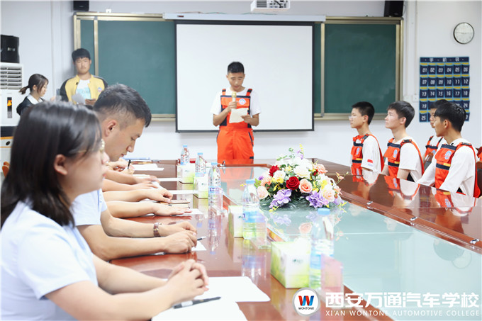 典禮第二項,學生代表發言。他感謝了學校提供給他們完成汽車夢想的平臺,并表示在校期間會樹立遠大的奮斗目標,打下堅實的技能基礎,修身精技,在人生的道路上乘風破浪,展現萬通學子的真風采!