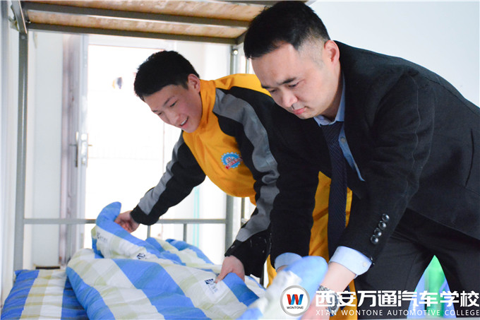 從入學第一天,西安萬通汽修學校就注重孩子的職素教育,宿舍內務整理標準、晨訓公共場合演講練習、職業裝著裝規范...點點滴滴都在教育孩子如何提升自身素養,也正是在這點點滴滴中,孩子們從“衣來伸手飯來張口”變得被子疊成豆腐塊了、書本擺放有順序了、回到家主動拖地了,而家長們也突然感慨:我的孩子長大了。