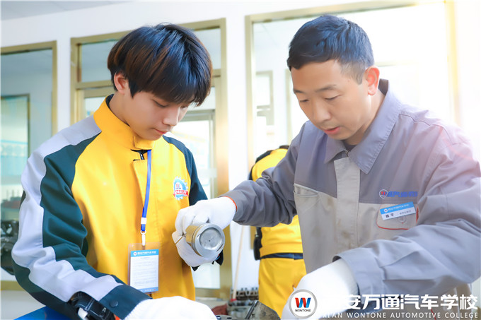 在公辦學校,文化理論課程占70%,實操機會少,再加上實訓項目設備單一,長期更新不及時,脫軌市場,無法滿足教學實訓需求,而且老師對職業素質方面不做重點培養,較為松散;而民辦學校需要優質的教育設備才能吸引來孩子入讀。所以萬通在教學中使用德國進口設備,擁有各大品牌整車,發動機、底盤、電機電控實訓臺、氣缸聽診器、燃油壓力表、蓄電池檢測儀等各專用設備,數量多、種類全,定期斥資引進如新能源等現代化設備,接軌行業前沿,充分滿足學生實訓需要。