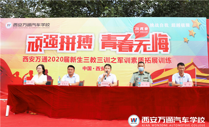 西安萬通校長助理爨助做軍訓動員,他指出軍訓作為萬通汽車教育“三教三訓”的重要組成之一,期望學生們珍惜軍訓生活,以飽滿的熱情、旺盛的斗志、頑強的毅力、威武的軍姿、恢宏的氣勢來展示我校學子的勃勃生機和奮發向上的精神面貌。
