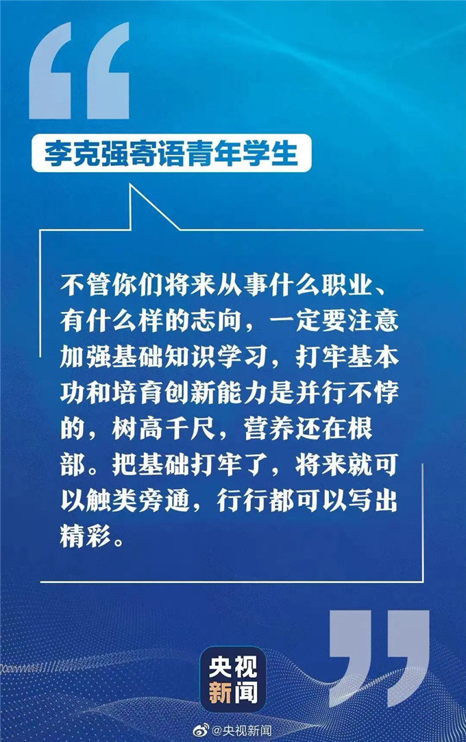 3月11日,第十三屆全國人大四次會議閉幕后,國務院總理李克強在人民大會堂三樓金色大廳出席記者會并回答中外記者提問,會上,總理囑咐青年學生要先打牢基礎,言語間滿含對青年的期望。