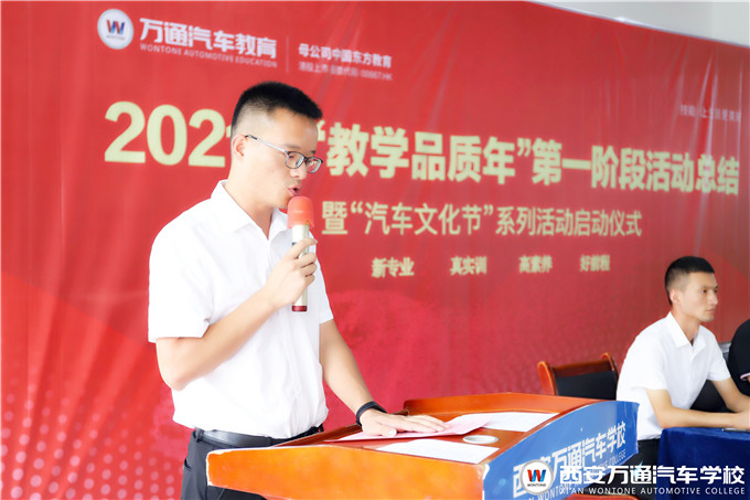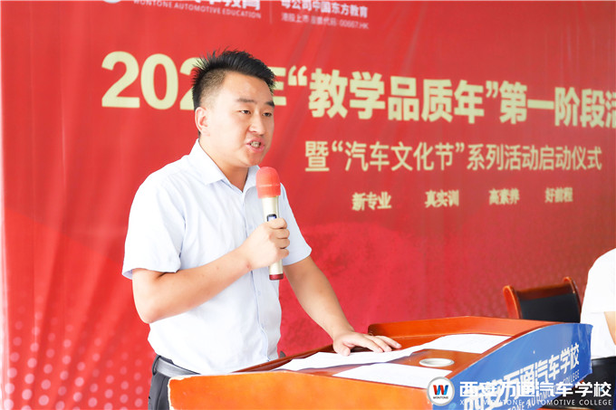 儀式最后,西安萬通汽車學校校長助理鄭助發表總結講話,他向所有獲得表彰的同學和老師們表示了熱烈的祝賀,并表示“教學品質年”系列活動的開展實現了學生全方位素質能力的迅速提升,也促進了學校教學質量取得進一步提升。希望全校師生在汽車文化節中能將積極進取的態度貫徹到學習工作中去,創造更好的佳績。