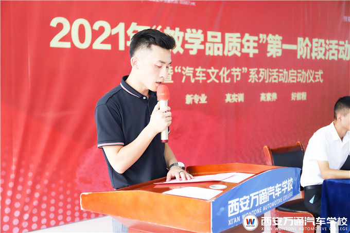 儀式首先由教務處梁主任致開幕詞,他詳細總結了第一階段教學品質年的各項活動,表示在第一階段,各項活動以多樣化的形式、廣泛的參與度收獲了很好的成效,對于廣大學生在專業提升、技能拓展等方面起到積極作用。希望在汽車文化節的系列活動中,萬通師生們能夠繼續努力,積極參加各項活動,提高自身技能,揚帆遠航鴻鵠志,腳踏實地攀高峰!