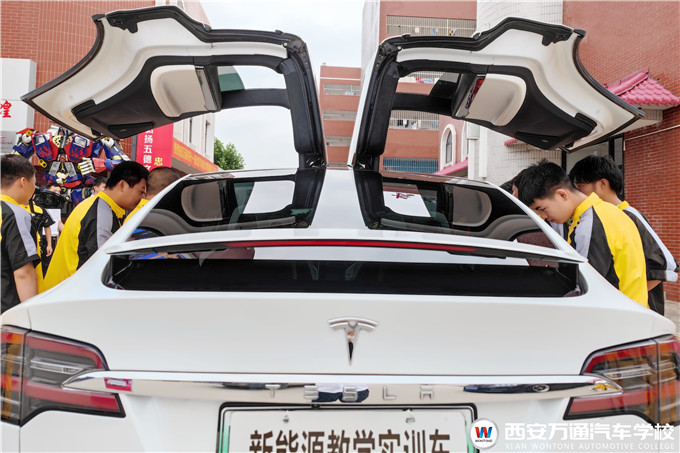 活動當天,特斯拉modelx、奔馳邁巴赫改裝房車、超級改裝車馬自達6等百萬豪車炫酷登場。優美的車身曲線、極具科技感的“天使之翼”、兼具舒適與大氣的改裝展示等等,瞬間吸引了學子們的目光。學子們在老師的指引下現場進行體驗,了解汽車前沿科技,現場十分熱鬧。