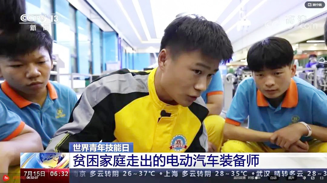 中央電視臺《朝聞天下》 世界青年技能日—貧困家庭走出的電動汽車裝備師