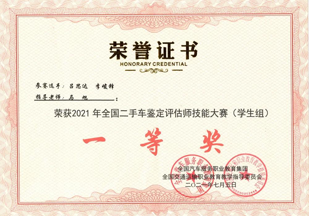 萬通學子榮獲2021全國二手車鑒定評估師大賽一等獎