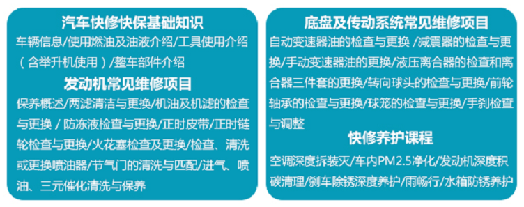 提供崗位:儲備店長:5-10人;汽車快修保養、汽車美容、汽車改裝、汽車裝潢:25-50人;汽車維修:30-60人