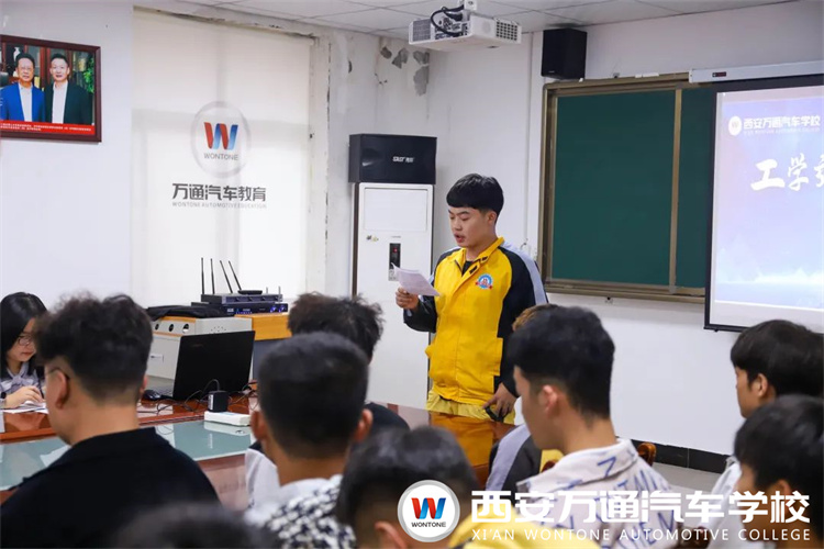 學子代表發言,他首先感謝了萬通與奇瑞為同學們提供了此次寶貴的學習機會,其次表示將于同學們一起認真學習企業文化、工作流程,在實習中鍛煉自己,成長為合格的汽修專業人才!