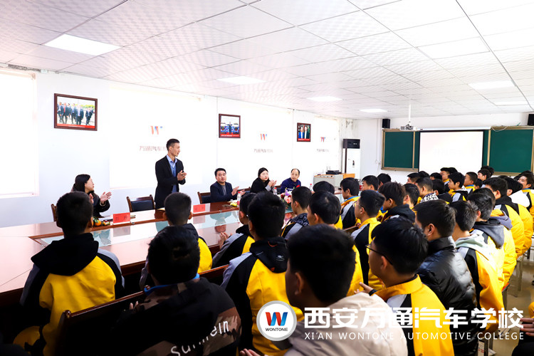 最后教務處梁主任表示學校將派出最優秀的教師擔任指導教師,為同學們提供優質服務,并對指導教師和培訓學員分別提出了要求和殷切期望,希望同學們可以在定制化的教學模式中學習更多的技能知識,同學們將在這里迅速提升技能水平,成為專業的汽車技術精英。藍田定制班的班主任張老師,會時刻關注同學們的日常學習,幫助同學們更快的適應西安萬通的生活。