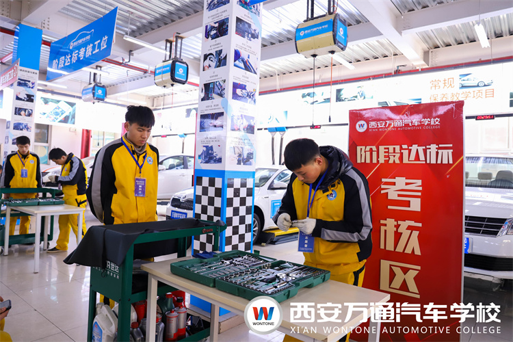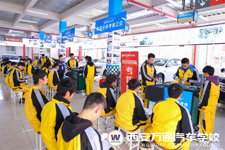 西安萬通汽車學校的階段達標考核周期短,頻率高,通過考核的學生可進入下一階段的學習,這種以考促學,以考促教的形式,既能監督老師的教學質量,也能幫助同學們更快、更牢固地掌握所學技能技術。