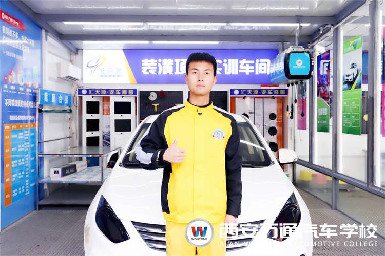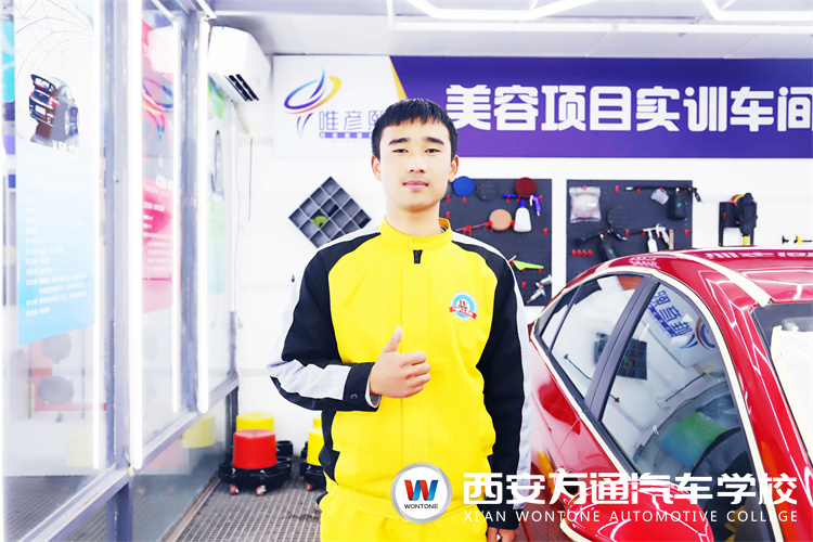 興趣是最好的老師。癡迷汽車,羅寬順是個不折不扣的汽車美容改裝愛好者,帶著一腔熱血來到了萬通學習。在美容實訓室里,他從基礎洗美開始學習,汽車車漆面打蠟、拋光、鍍膜、鍍晶、內飾清洗、以及發動機清洗、內飾翻新、內飾鍍膜等等,基礎課程完成后,又開始了進階課程:音響加裝、汽車隔音,包括疝氣燈、大燈改色、星空頂等改裝技術的學習,每一個課程他都在實訓室里充分上手練習將技術融會貫通。他說,從來沒想到一輛炫酷的改裝車背后原來有這么多的技術加持,也非常期待學成之后能夠親自動手去設計改裝屬于自己的車!