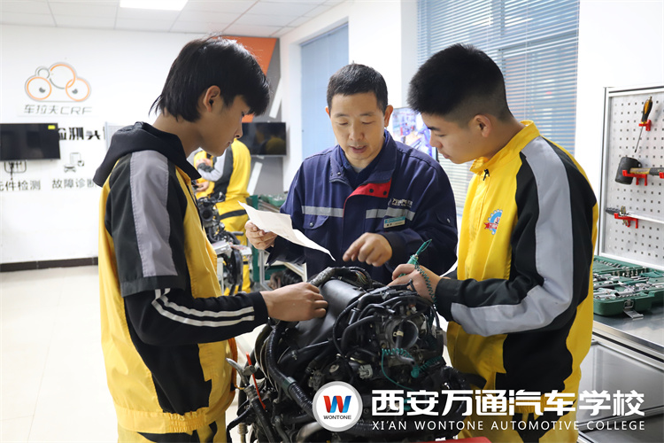 但西安萬通汽車學校的課堂不一樣,學校帶給學生們的更多的是新奇感和探索欲。理論示范課上老師風趣幽默,講解通俗易懂很接地氣,所以課堂上常常會發出爽朗的笑聲;實訓課更是大展身手的地方,所以每個學生的進步都會得到充分的尊重與重視,點評也是一針見血,他們說這種教學靈活有趣,他們說這樣的師生互動更直接,更能抓住學生的心!