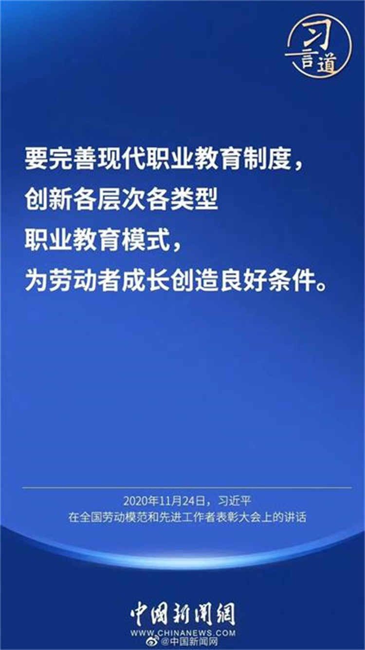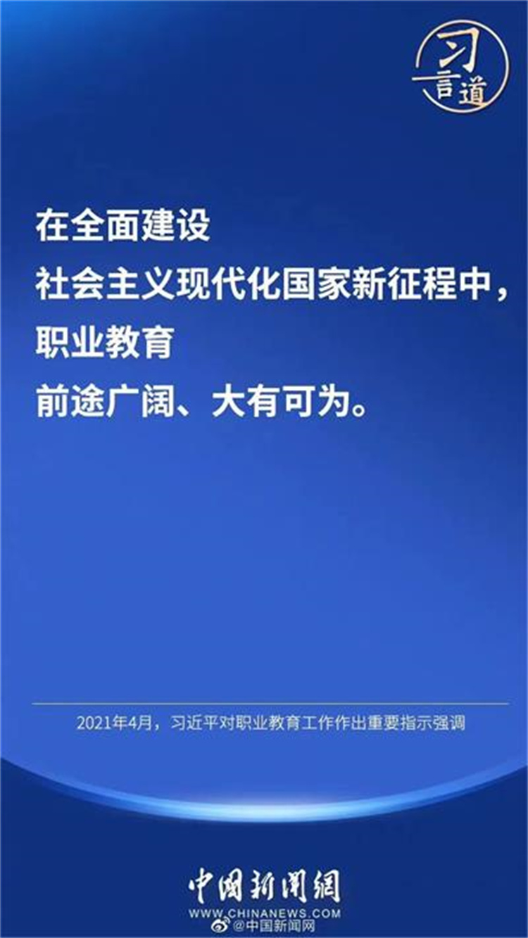 職業教育是國民教育體系和人力資源開發的重要組成部分。進入新時代,以習近平同志為核心的黨中央把加快發展現代職業教育擺在更加突出的位置,強化頂層設計,加大支持力度,推動教產融合,逐步形成了具有中國特色、世界水平的現代職業教育體系。習主席也曾為此做出一系列重要論述。
