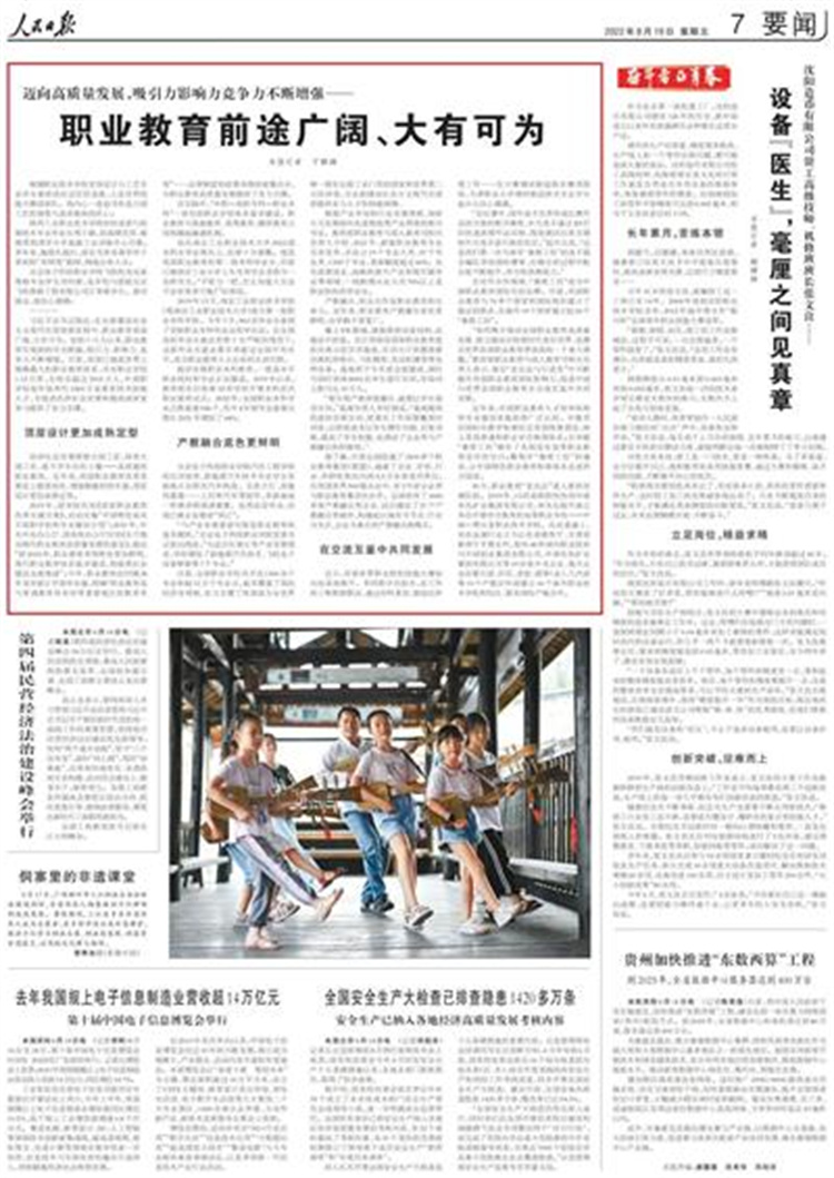 日前,《人民日報》刊發報道《邁向高質量發展,吸引力影響力競爭力不斷增強——職業教育前途廣闊、大有可為》職業教育發展再一次被聚焦,報道中提到:“黨的十八大以來,職業教育實現新的歷史跨越,吸引力、影響力、競爭力不斷增強。目前,我國已建成世界上規模最大的職業教育體系,共有職業學校1.12萬所,在校生超過2915萬人,中高職學校每年培養約1000萬高素質技術技能人才,為促進經濟社會發展和提高國家競爭力提供了有力支撐。”從一系列政策及方向來看,未來我國職業教育發展光明無限!