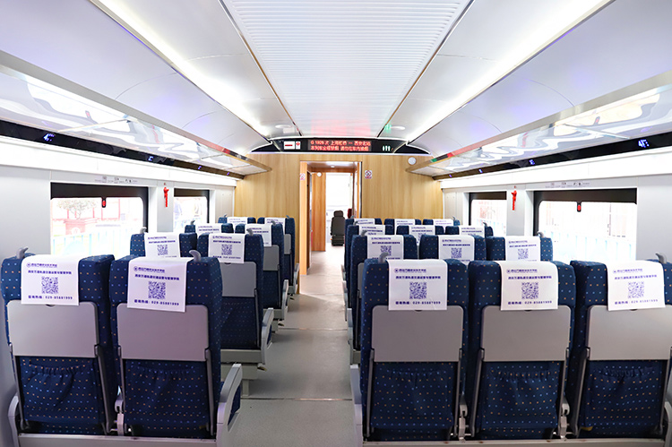 1:1還原高鐵模擬艙,為了讓學生掌握前沿技術,西安萬通引進高鐵模擬艙,外觀按照復興號1:1仿真制作,長18米、寬3.25米、 高2.8米、空載13噸,含有復興號型車頭、列車控制室、一等座旅客、二等座旅客、餐車吧臺、洗漱間等功能區域。