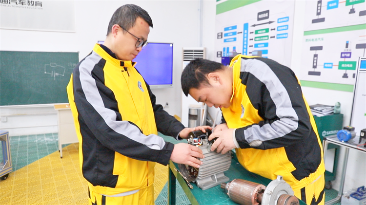 在章亮跑大貨車的時候,他就有注意到高速路上有很多新能源車和油電雙混的車,看到這個 ,章亮覺得新能源在現在都已經這么火爆了,那未來新能源車的維修市場也是會火起來的,他便想著學會新能源技術的話就趁現在。 章亮來到西安萬通汽車學校來學習新能源汽車檢測與維修技師專業,章亮告訴說:“在學校學習李元寶老師講課專業,也很通俗易懂,在學校就把實操和理論都學精,我們畢業時學校也會幫我們推薦企業,在工作中也會磨練自己的技術,提高自己的收入”。
