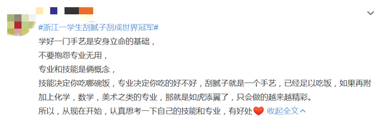 “任何事情做到極致都很了不起” 還有網友認為 “和中學階段的學習沒有多少關系”