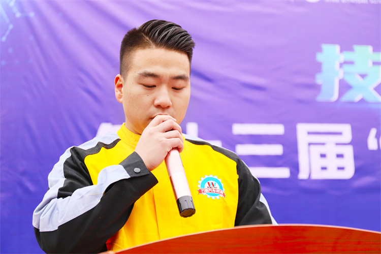 教務處李主管向在場的學生宣讀“萬通杯”的比賽項目,例如:汽車保養、汽車檢測與診斷、新能源項目以及城市軌道交通項目等多個比賽項目,李主管表示:此次“萬通杯”全國技能大賽綜合了參賽的專業技能、思維技能及現場解決問題的能力為一體,希望西安萬通的參賽選手可以掌握過硬的汽車技能和靈活的思考能力,在比賽中勇創佳績。