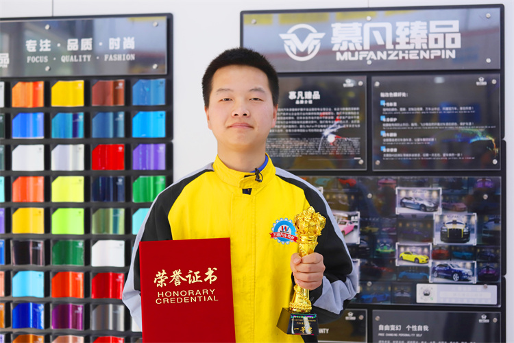 “我能在汽車美容(隱形車衣)項目獲得冠軍,我真的很開心,我把這個好消息告父母時他們也很開心,這次比賽我能與全國的小伙伴們同臺競技,我的技術得到了精進,心態也與之前有了很大變化,我相信越努力越幸運。”