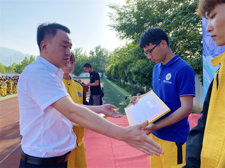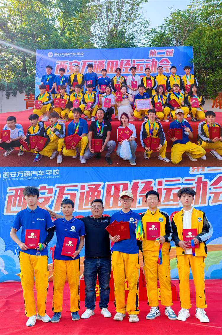 我校校區張主任和學生處萬主管為此次獲獎的學生頒發單人項和團體獎項的獎牌及榮譽證書,并在現場頒發“精神文明班級”獎。