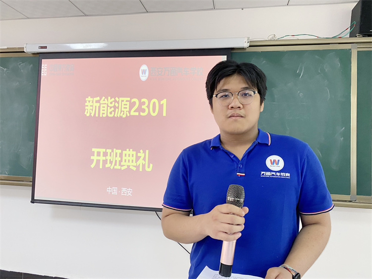 教務處李主任首先祝賀大家開班,開啟在西安萬通的成長之路,希望大家可以堅定信念、確立目標、培養良好的習慣,大家學習的汽車后服務市場行業前景廣闊,人才需求量大,汽車檢測與維修專業是學校王牌專業,配備了良好的設備與師資,希望大家認真學習,未來可以成功就業!