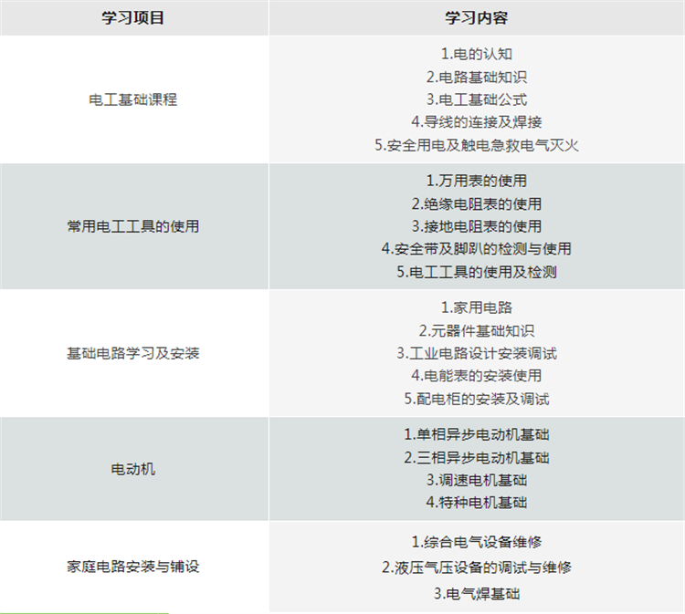電工招生簡章 隨著時代的發展,電力能源應用越發廣泛,電工是與我們日常生活息息相關的職業。小到家用的電線路安裝,大到工廠企業的全自動控制,再到大型商場、學校、礦場、酒店等,各行各業都離不開電工。新能源汽車的推行、高鐵鋪設、電鐵的覆蓋等,對電工人才的需求量都在大幅提升。
