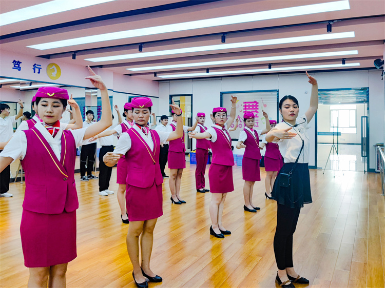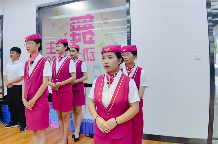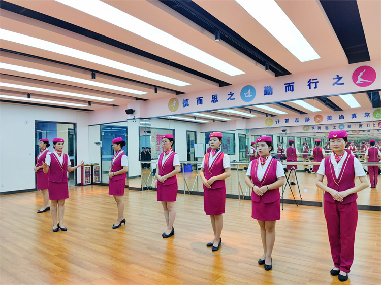 02 設施設備齊全 學校擁有先進的教學設施和設備,包括高鐵模擬艙、車站模擬檢票站、乘務形體實訓室、乘務化妝實訓室等,為學生提供了良好的學習環境。