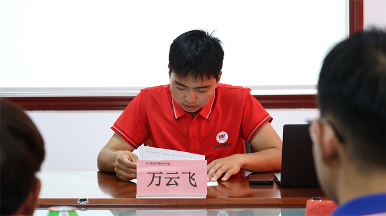 校區主任張見兵的壓軸致辭更顯深情:“汽修是技術,更是藝術。希望你們在萬通練就過硬本領,成為行業‘破浪者’!”