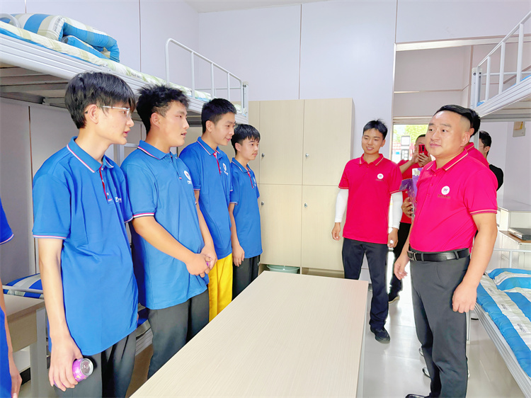 當晚,慰問小組一行走進每一間新生宿舍,親切地與同學們交流。校區主任仔細詢問大家的生活適應情況:“最近天氣炎熱,宿舍的空調是否正常?晚上休息得好不好?”同學們紛紛圍攏過來,分享自己的感受。