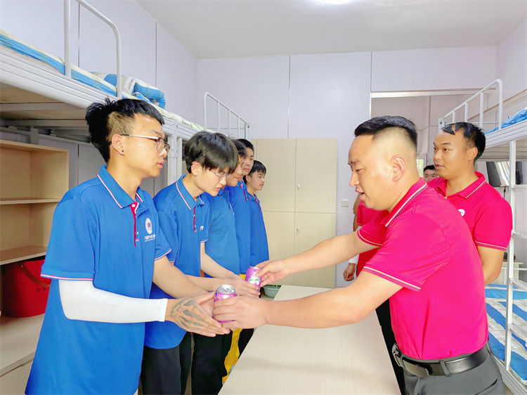 夏夜的西安,微風送爽,卻仍帶著幾分暑熱。西安萬通汽車學校的校園里洋溢著溫暖與關懷。校區主任帶領學生處主管、班主任李小安、曹偵、劉凱超等老師組成慰問小組,深入新生宿舍,為同學們送去清涼的飲料和真摯的問候。